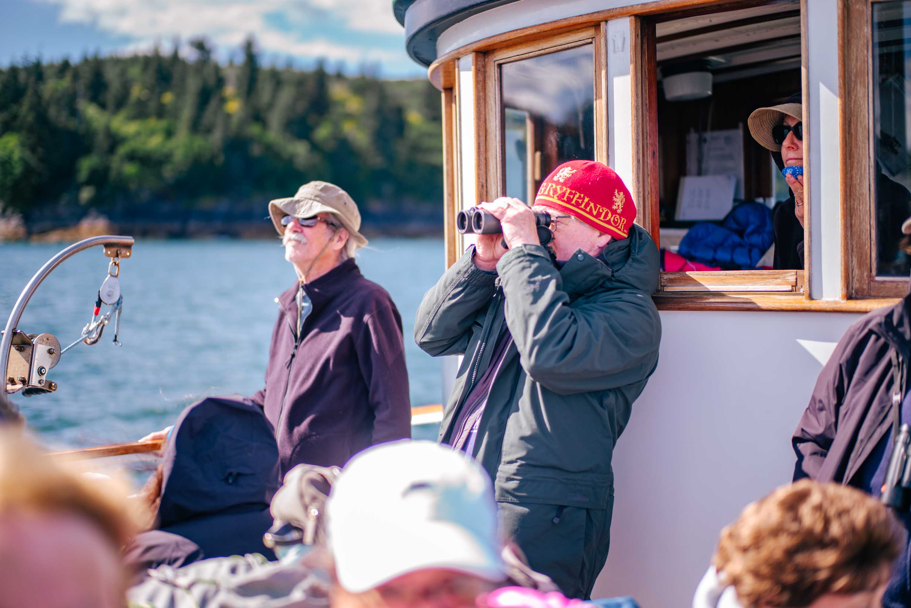 Before our morning started, I took a walk around the harbor. Crisp air matched the buzz of fishermen, charters, and scenic rides filling up and setting out for the day, and I zigzagged around carts of supplies and people. The boats were as colorful and varied as the town itself, all illuminated in the sunshine that continued to bless us. Shortly after, we took off.