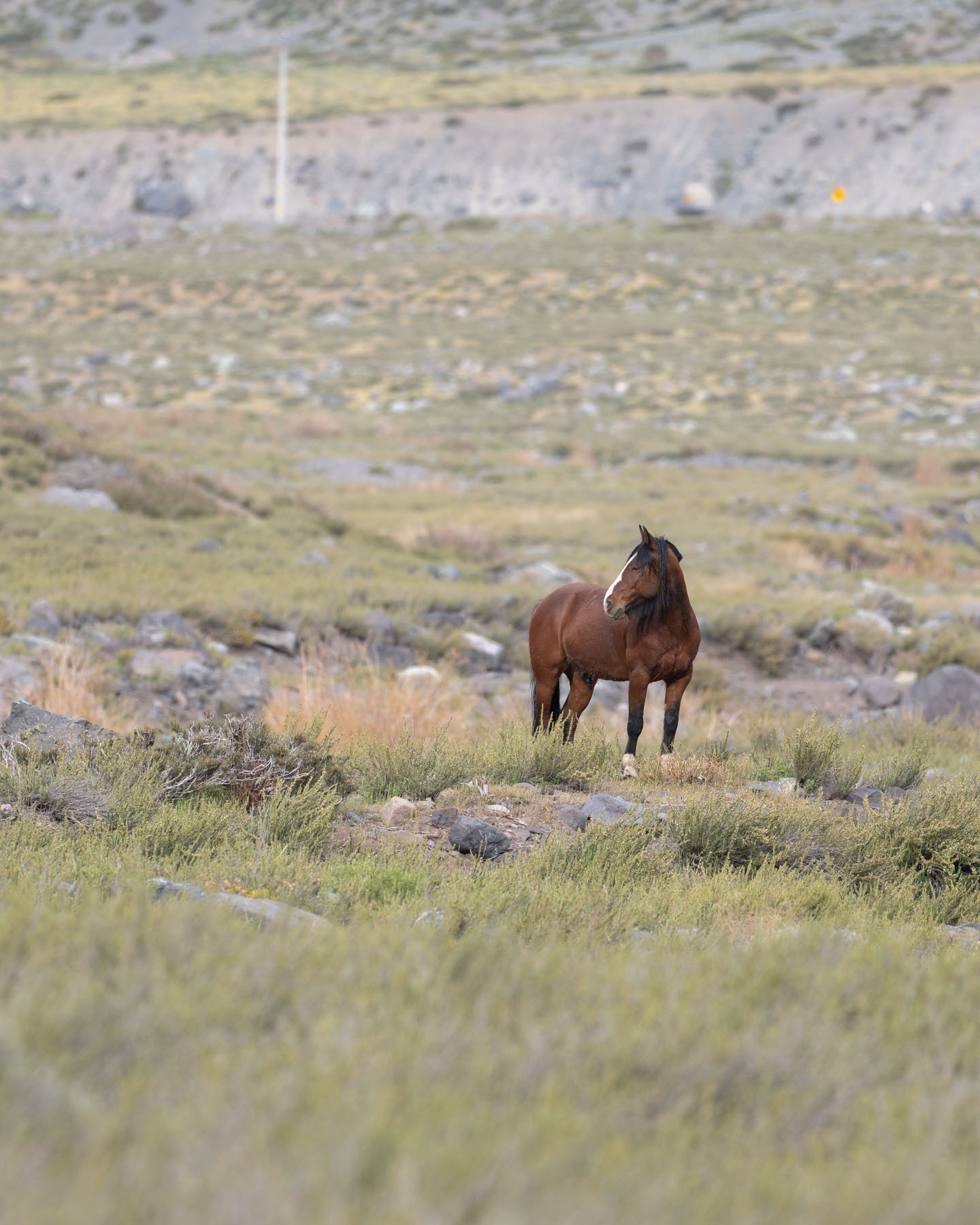 We turned off the main road to park beside a mass of gravel that looked like it was simply piled together from a rockslide for future construction use. Here, the habitat in the small, flat basin looked well-suited to Diademed Sandpiper-Plover needs. In front of us was a half-mile-wide bowl of rocky streams lined with some gravel bars and much more peatland and grasses. It felt right to comb it all on foot, and so we did, guided by Gray-breasted Seedsnipe proudly singing from boulders all around us. One Magellanic Snipe flushed, then more.