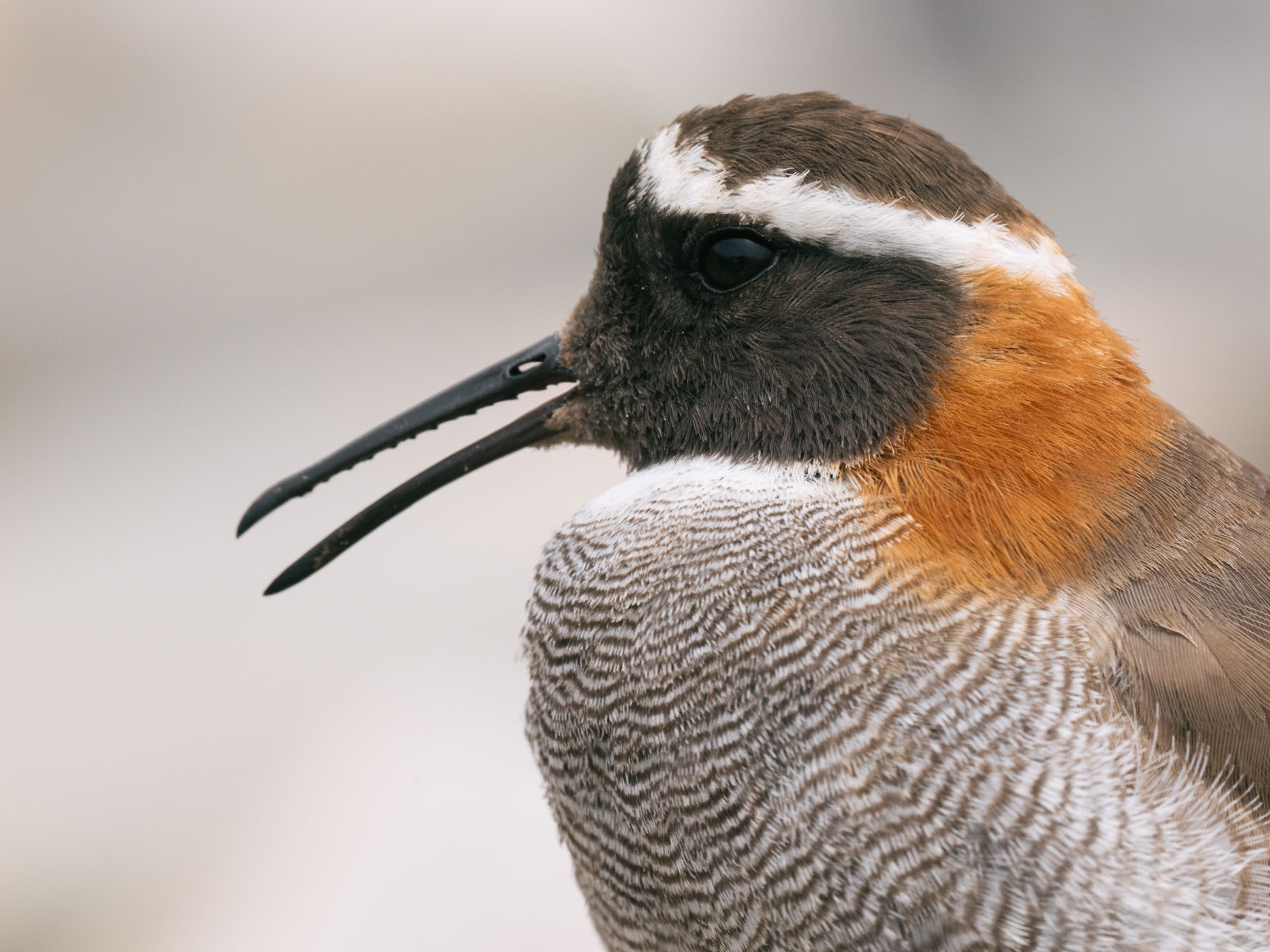 We took hundreds of photos, but had so much time with this family that there was plenty of space to simply watch them, too. I took in more details: the mother’s bill was slightly curved, with just the slightest of knobs at the tip, and when she opened it, a dozen slight serrations were visible. The chicks’ bills were short, stubby, and rounded.